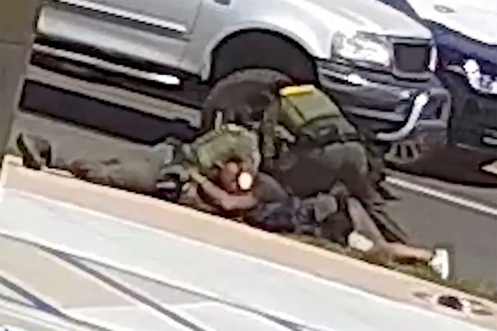 At one point during the struggle, one of the cops yells “He’s got my gun” — prompting the other deputy to open fire, according to the department. Two shots can be heard in the cellphone footage.