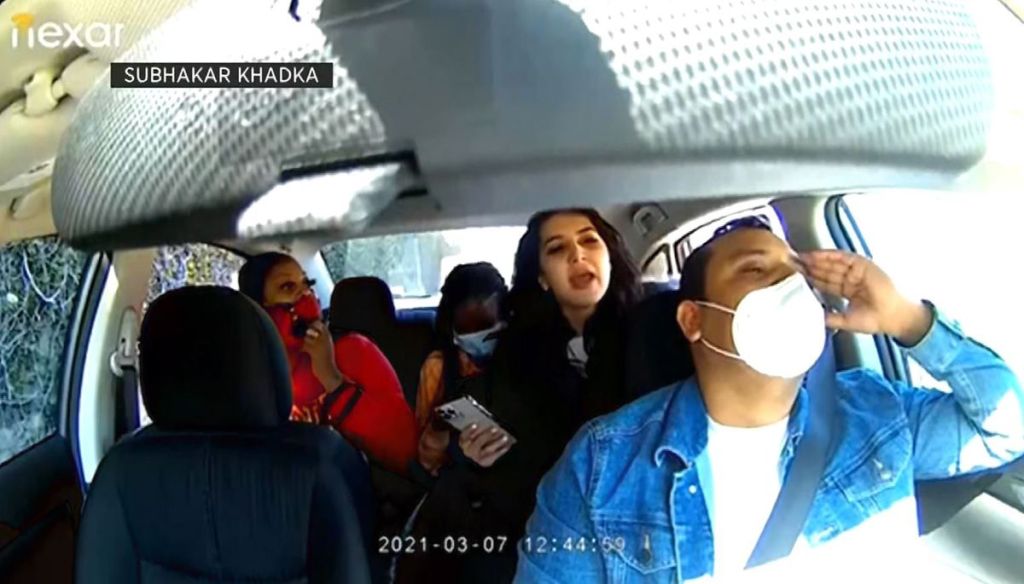 As if things couldn’t get any worse … the “Karen” grabs the driver’s phone from his dashboard before ripping off his mask.