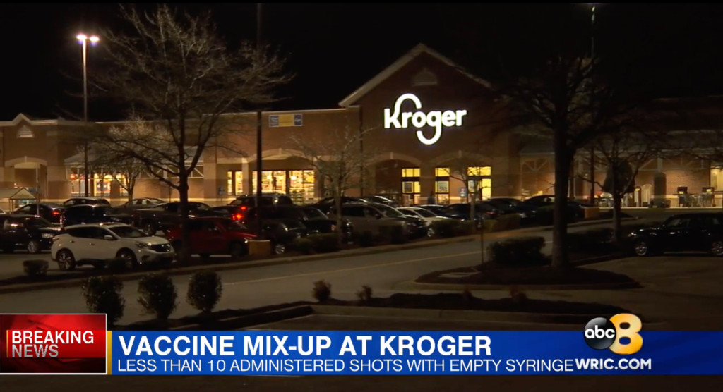 “Less than 10” people got an empty shot instead of the vaccine, a Kroger spokesperson told the outlet.
