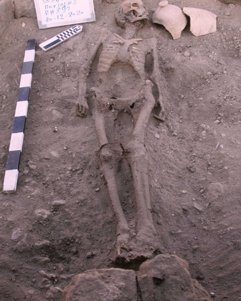 Inside the city, a remarkable human burial was discovered — a person with his arms outstretched to his side, with remains of a rope wrapped around his knees. Investigations are underway, as the location and position of the skeleton are “rather odd,” according to Hawass’ statement.