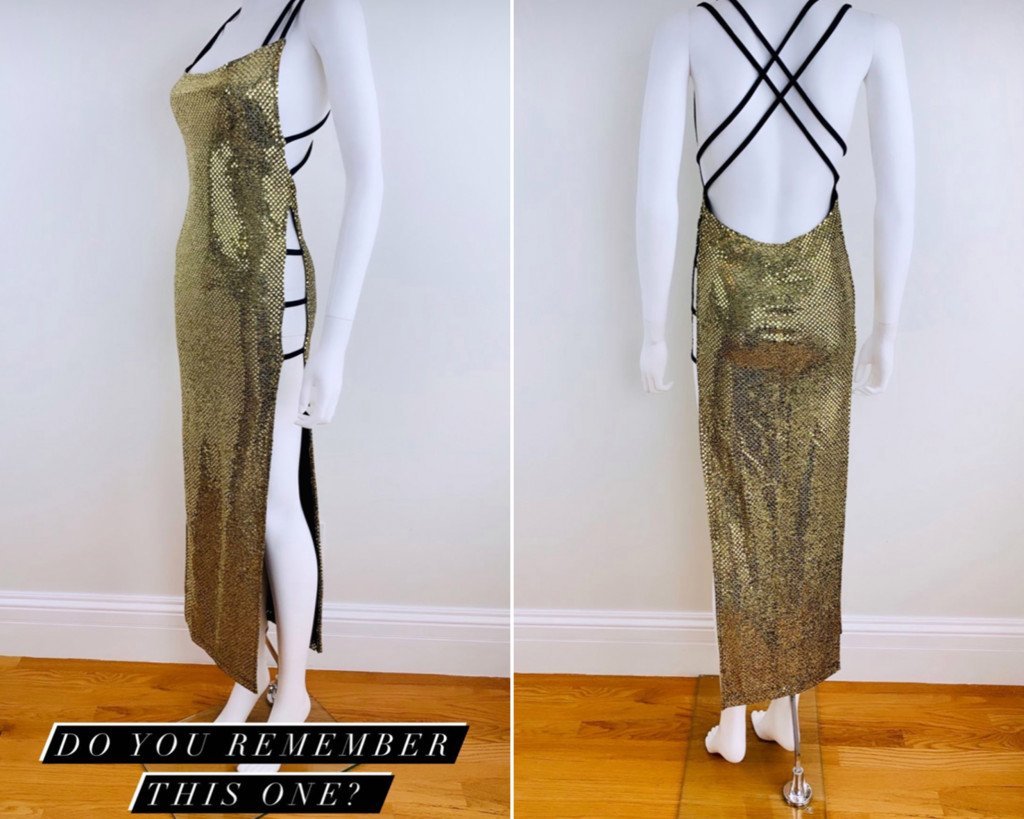The Oscar winner, 54, sent temperatures soaring on social media Wednesday, posing in a shimmering gold sequin gown with an open back and sides from La Dolce Vita Vintage.