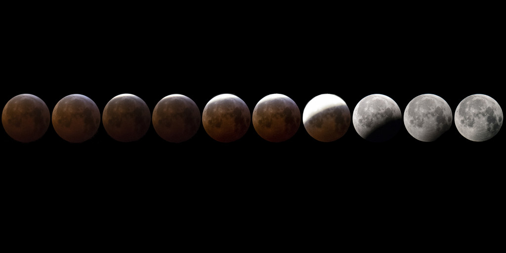 The reference to blood may sound macabre, but it refers to the brick-red hue the moon may take on due to an optical illusion caused by Earth’s atmosphere. Before the sun and moon are in direct opposition, sunlight that normally reflects directly off the lunar surface will instead pass through Earth’s atmosphere, which filters out the blues of the UV spectrum so that only the reds and oranges remain — hence the reddish gradient effect. It’s the same mechanism that gives sunsets and sunrises their gorgeous colors, according to Space.com’s interview with Jackie Faherty, a lead astronomer and astrophysicist at the American Museum of Natural History.