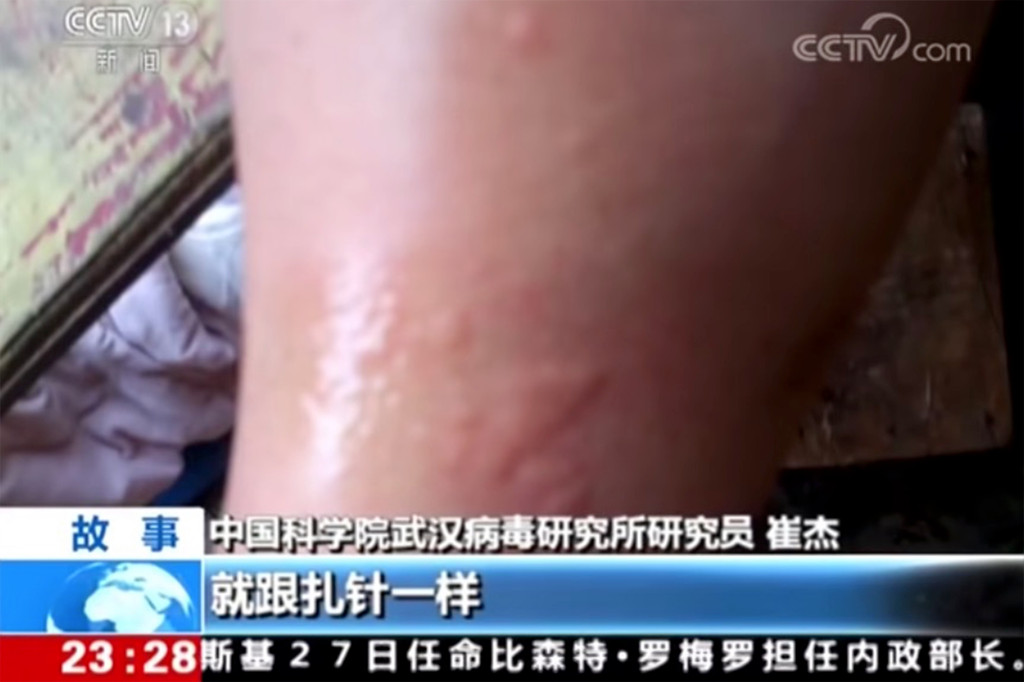 The video — first broadcast in China on Dec. 29, 2017 — then cut to a person’s limb badly swollen from an apparent bat bite. Scientists also admitted getting spattered with blood during the research, according to the Sun.