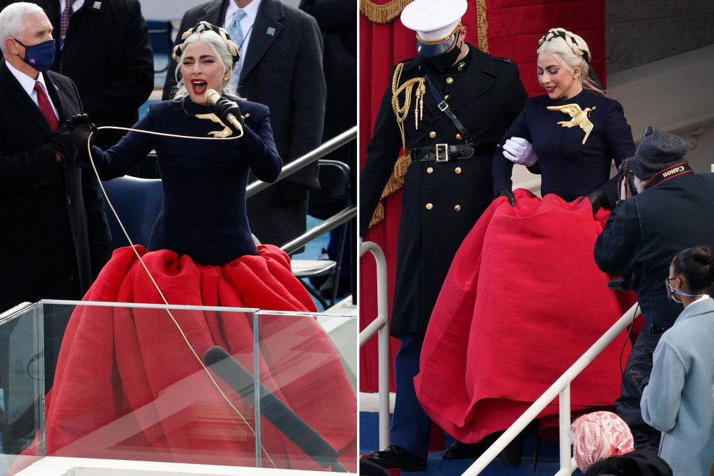 The 34-year-old pop star’s larger-than-life gold Schiaparelli dove stole the spotlight during her performance at President Joe Biden’s swearing-in ceremony in January, with many on social media comparing it to a mockingjay pin.