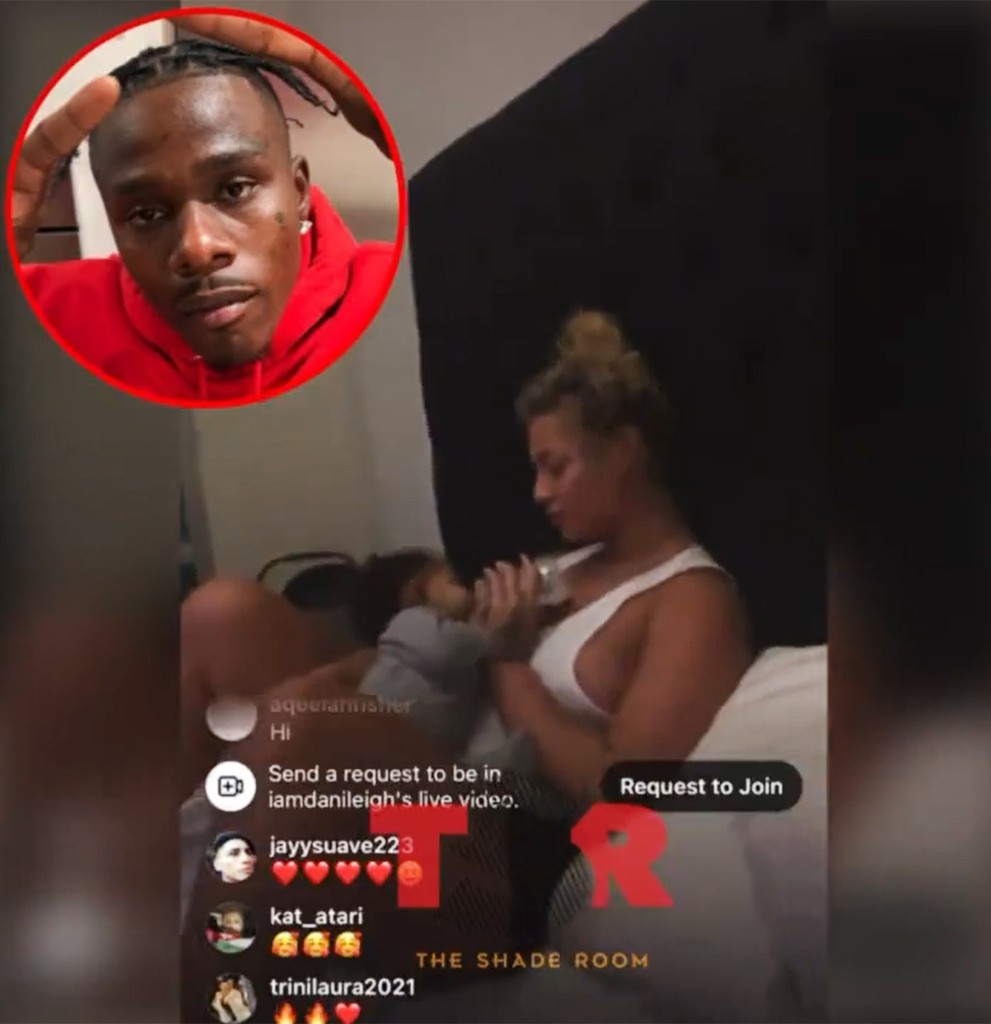 The videos, which were captured by The Shade Room on Sunday, show the rapper recording DaniLeigh as she feeds their child and repeatedly saying “F–k you” to DaBaby.