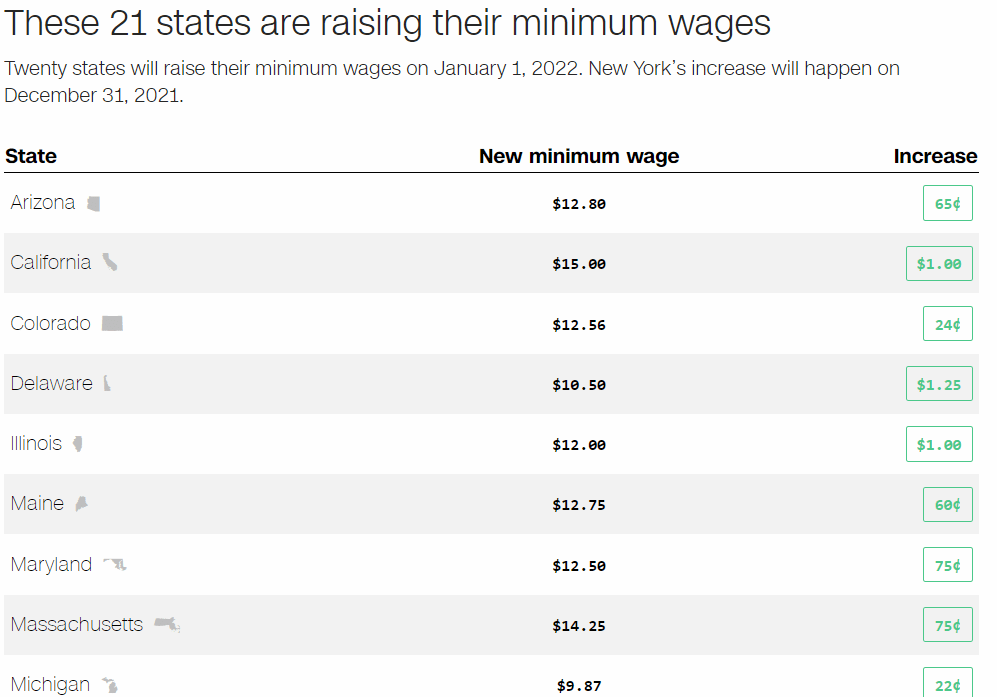 As 2022 begins, some states will enact pay bumps ranging from cents to dollars per hour.