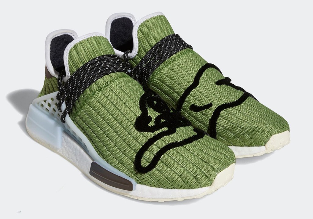 What You Need to Know: The latest colorway of Pharrell’s NMD Hu is also the latest collaboration with his iconic streetwear brand, BBC ICECREAM. This particular pair is dressed in a ribbed khaki green knit upper with brown detailing on the heel and lateral midsole insert. A large version of ICECREAM’s Running Dog logo is printed across each foot in black. Anyone looking for an extra pop of color can swap in the baby blue laces that are also packaged with each pair.