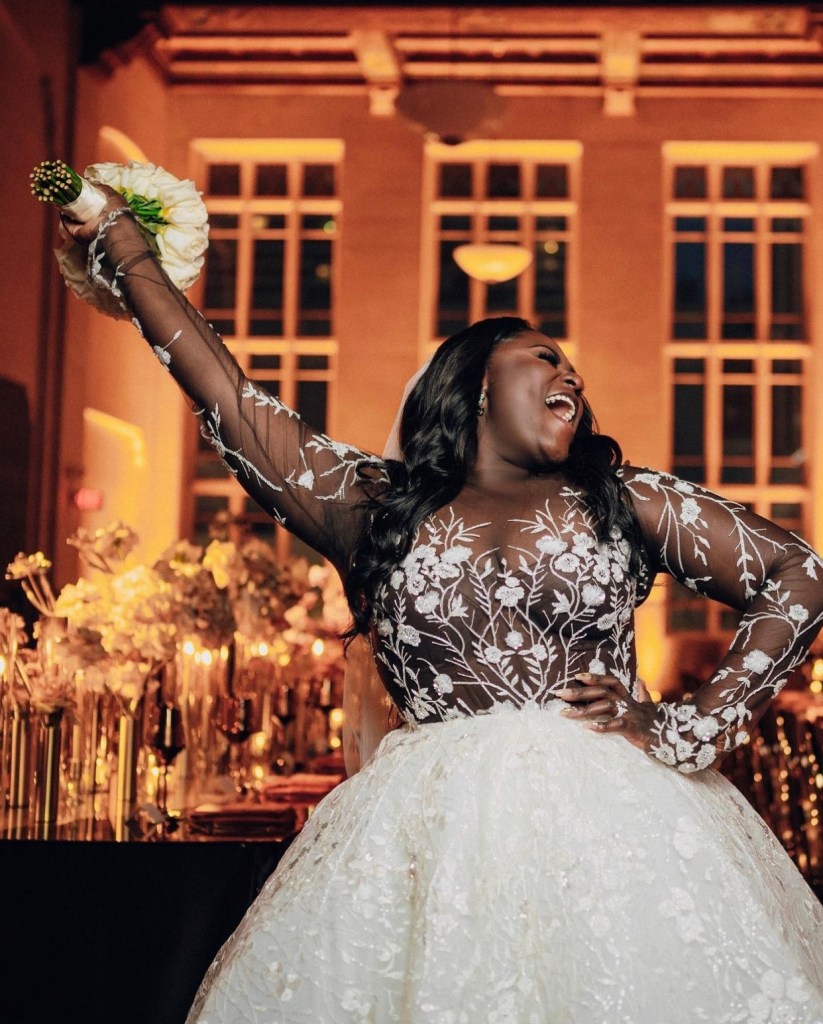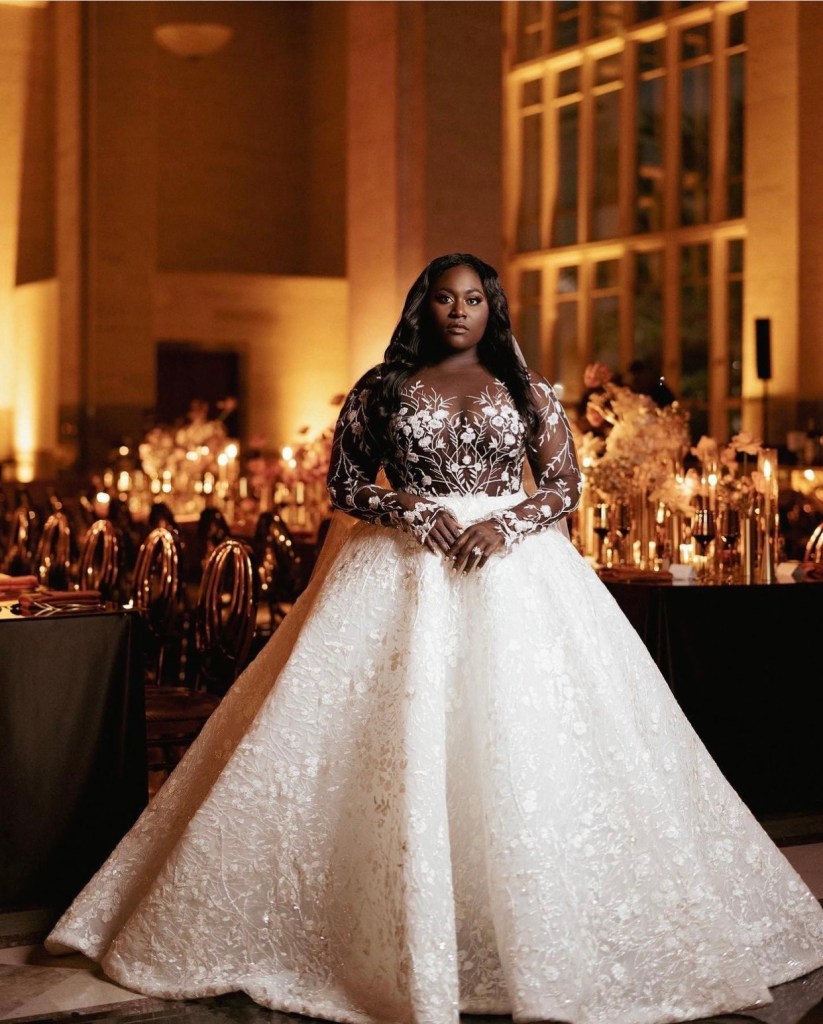 “We are featuring the beautifully detailed wedding dress worn by Orange Is the New Black’s star, Danielle Brooks. The dress was designed by Oluwagbemisola Okunlola, an extremely talented African designer from London.”