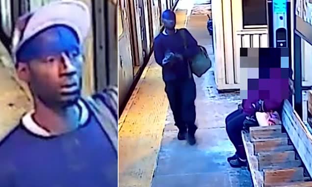 The 43-year-old victim was sitting on a bench on the southbound platform of the Wakefield–241st Street station around 5:15 p.m. Feb. 21 when a man began walking toward her, holding a black plastic bag, according to cops and the clip released late Sunday.