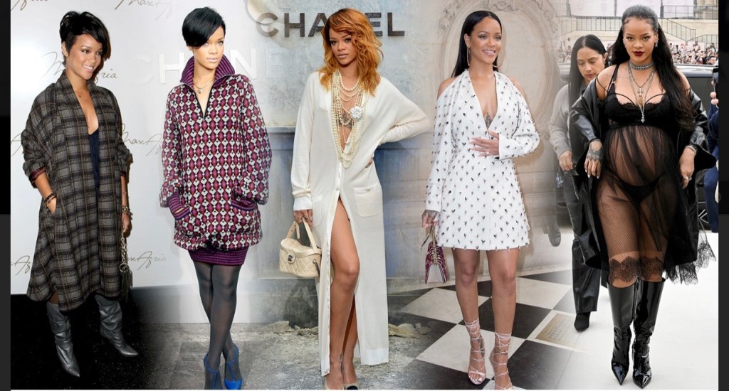 The nexus point between Rihanna’s POV and fashion’s biggest designers has led to boundary-breaking style moments. Currently expecting her first child with her boyfriend A$AP Rocky, Rihanna has become the toast of the fall 2022 season thanks to the belly-baring maternity looks she’s worn at shows like Gucci and Dior. Few could strut through the streets of Paris in nothing but a thong and a transparent tulle dress, but such daring is what makes Rihanna unique. When Maria Grazia Chiuri debuted the party frock in the brand’s pre-fall Lookbook, the designer paired it with bike shorts and combat boots. Rihanna amped up the sex appeal by adding Fenty lingerie, patent leather boots, and layers of rockstar-worthy necklaces from Chrome Hearts.
