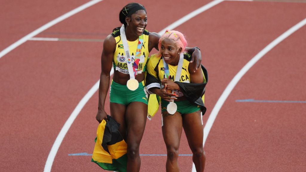 First, Shericka Jackson set a new national and championship record after beating Shelly-Ann Fraser-Pryce to gold.
