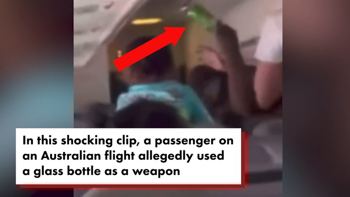 In a video of part of the incident, a group of rowdy passengers can be seen standing near the aisle where one of them allegedly raises a bottle above their head seemingly to strike another passenger.