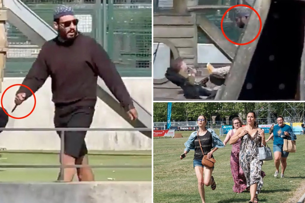 Chilling video footage caught a Syrian refugee repeatedly stabbing screaming adults and kids in a French playground Thursday — including at least one toddler in a stroller.