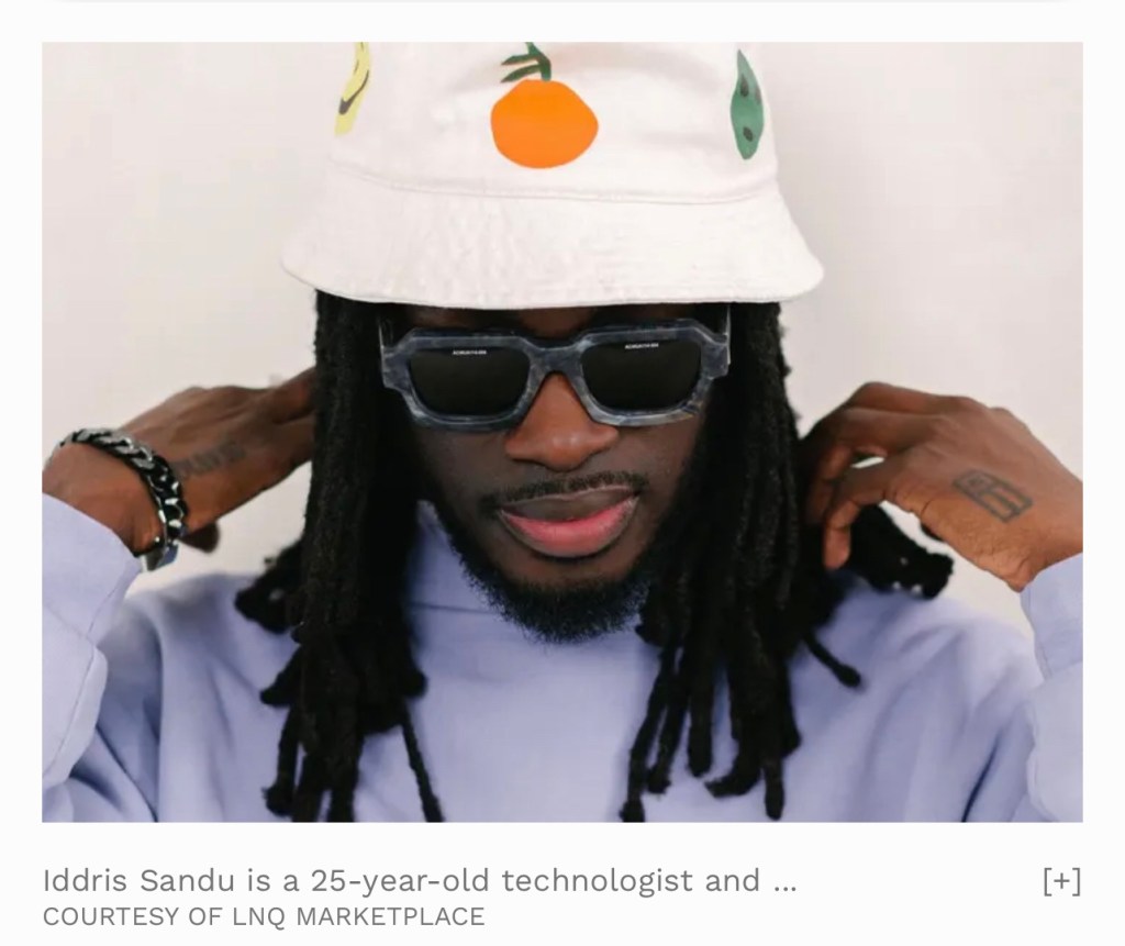 Iddris Sandu is a 25-year-old technologist and founder of Spatial Labs, an impact-driven tech incubator backed by venture capital firm Marcy Ventures, founded by JayZ. Since launching LNQ Marketplace in May of this year with the Gen One Hardwear collection, the decentralized retail ecosystem is redefining the buying, owning, and selling experience with fashion via the first blockchain-enabled fashion line.